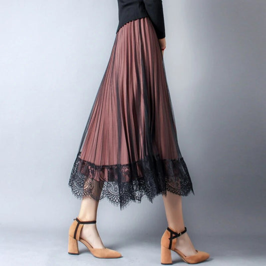 Vintage Lace Gauze Women's Skirt Elegant Loose