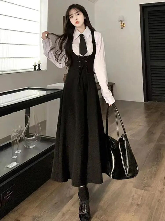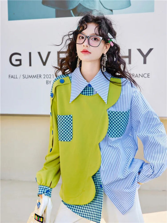 Vintage Fake Two-piece Striped Shirt Asymmetrical Patchwork
