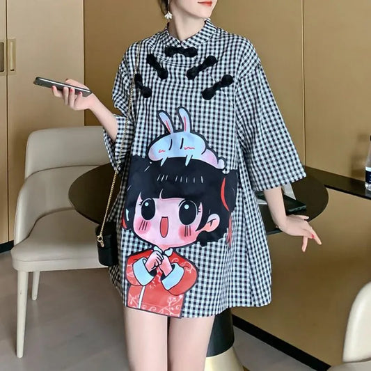 Loose Relaxed Dress Buckle Checker Print